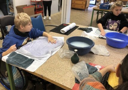 Am diesjährigen Zukunftstag besuchten wir, die Klasse B, das Atelier der ArWo Frutigland. Wir wurden herzlich empfangen und die Jugendlichen durften filzen und ein Trinkglas mit schönen Motiven bekleben, welches anschliessend mit der Sandstrahlmaschine bearbeitet wurde. Zum Znüni wurden wir mit einem feinen Weggli und Schoggistängeli verwöhnt.